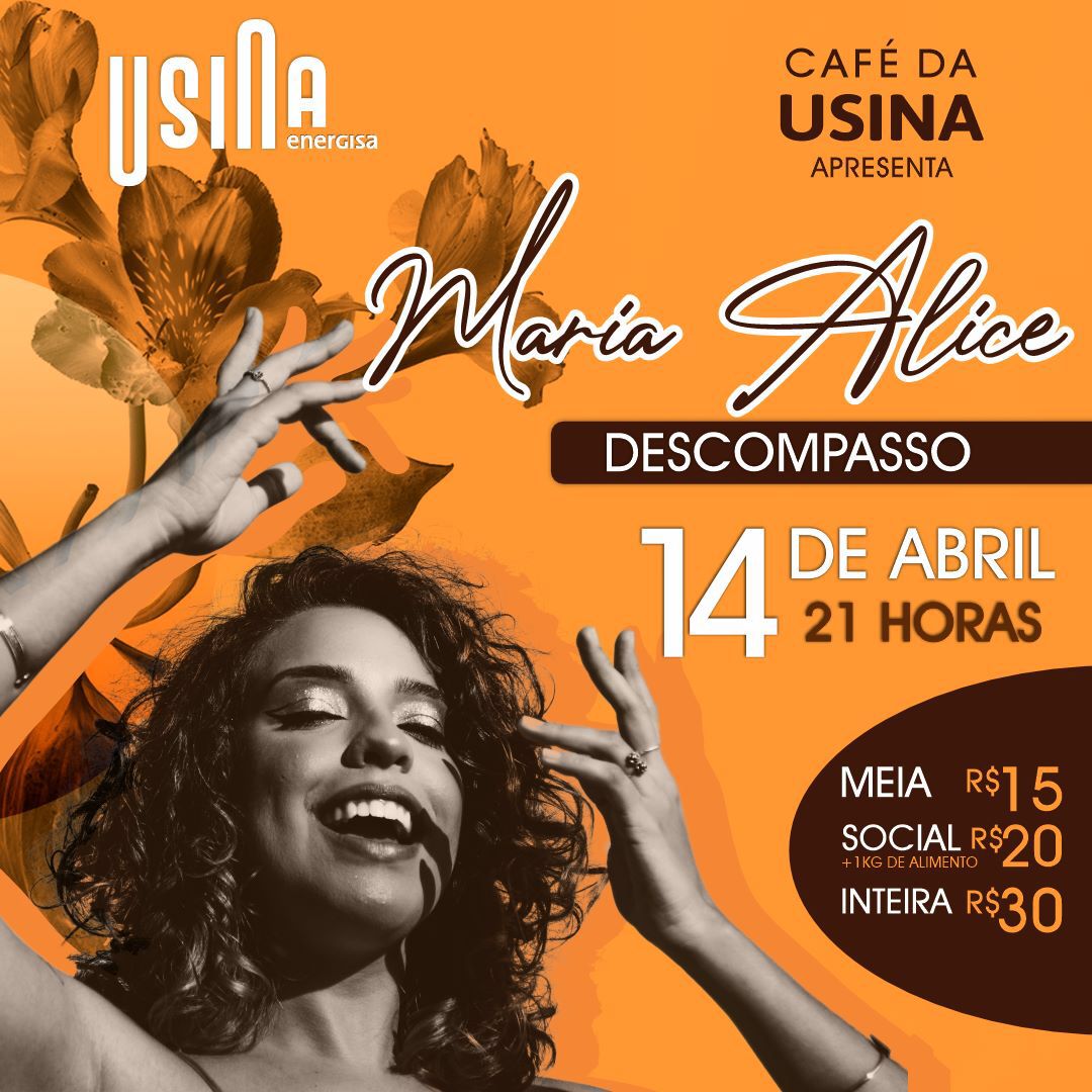 Nesta sexta-feira(14) às 21h, acontece a reinauguração do Café da Usina, no bairro do Tambia, em João Pessoa pessoa com a 4ª edição de “Descompasso”, show realizado pela cantora de Maria Alice. Desta vez, o encontro acontece no palco-casa onde ela fez suas primeiras apresentações.