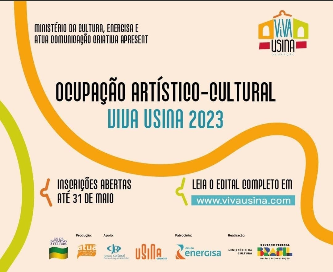 O Ministério da Cultura, a Atua Comunicação Criativa e a Energisa encerram no próximo dia 31, às inscrições para o Edital Viva Usina. Ao todo, são 140 propostas selecionadas nas áreas de música, teatro, circo, artes cênicas/performance artística, artes visuais, cultura popular, contação de histórias, literatura, artesanato e gastronomia. Os cachês chegam até R$9.000.