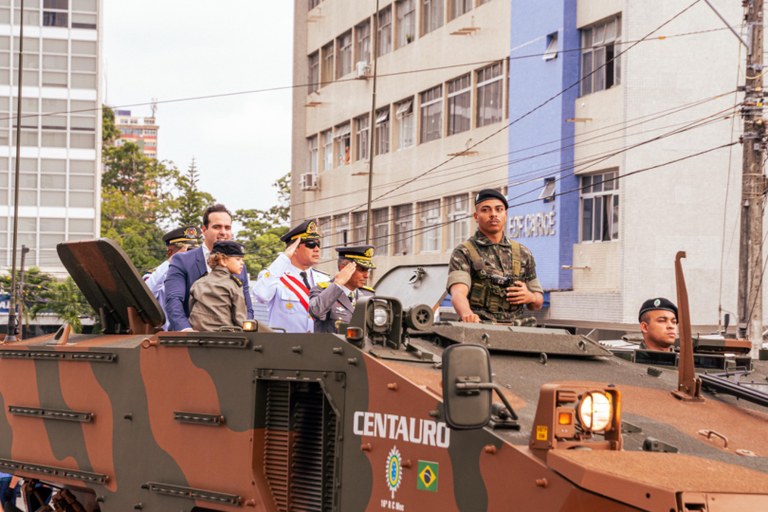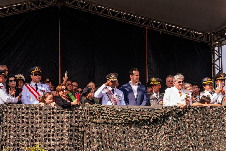 O vice-governador ressaltou a importância de celebrar um dia marcante para a nação e fortalecer o espírito cívico nos cidadãos. “É também uma oportunidade, através do desfile, das pessoas verem o quanto as nossas forças de segurança estão bem equipadas, bem formadas. Temos aqui armamentos de ponta para que o nosso capital humano, que são os homens e mulheres que estão na linha de frente, estejam bem preparados e equipados para enfrentar os desafios do dia a dia”, disse Lucas Ribeiro, que esteve acompanhado da segunda-dama Camila Mariz.